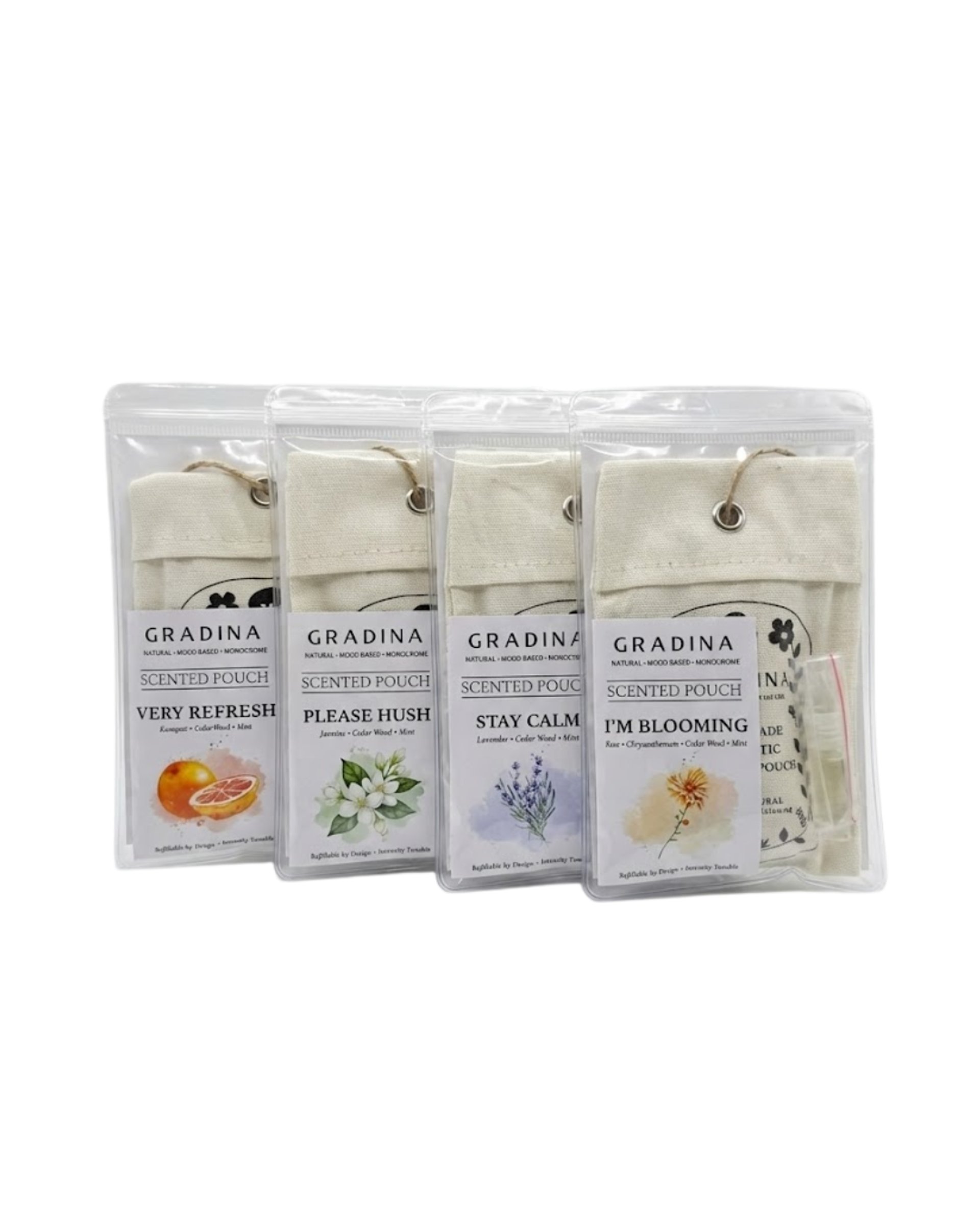 Natural, refillable scented pouches made with real flowers and essential oils.